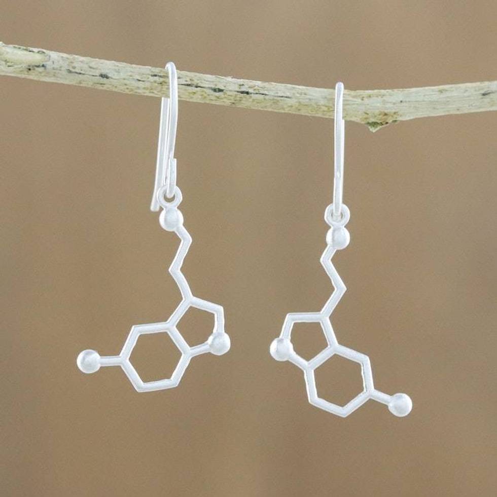 Sterling Silver Modern Double Hexagon Dangle Earrings 'Serotonin' Item ID: 2676651630