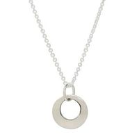 "Step up your style game with this sterling silver pendant necklace-simple, modern, and featuring a circular design with a cool hollow center. It's the perfect accessory for an effortlessly sleek and contemporary look."