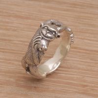 Sterling Silver Monkey Band Ring from Indonesia 'Ape Pose' Item ID: 2670122280