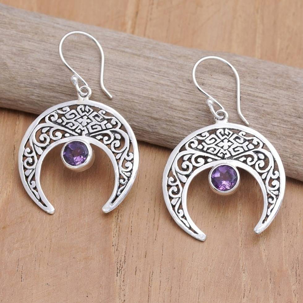 Sterling Silver Moon Dangle Earrings with Amethyst Gems 'Purple Twilight' Item ID: 2671762925