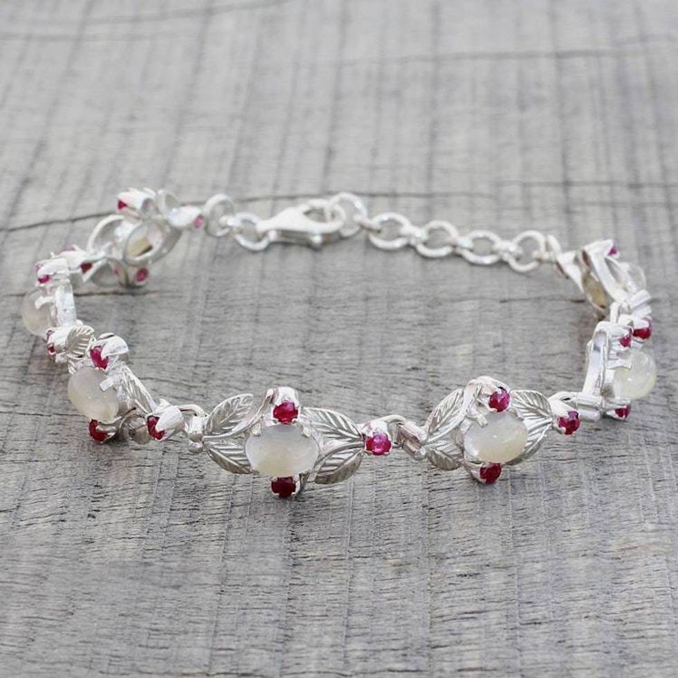 Sterling Silver Moonstone Ruby Link Bracelet India 'Moon Red' Item ID: 2676663794