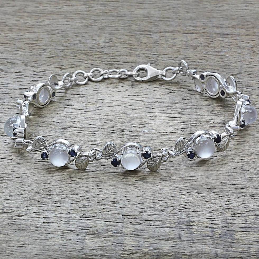 Sterling Silver Moonstone Sapphire Link Bracelet India 'Moon Blue' Item ID: 2669924818