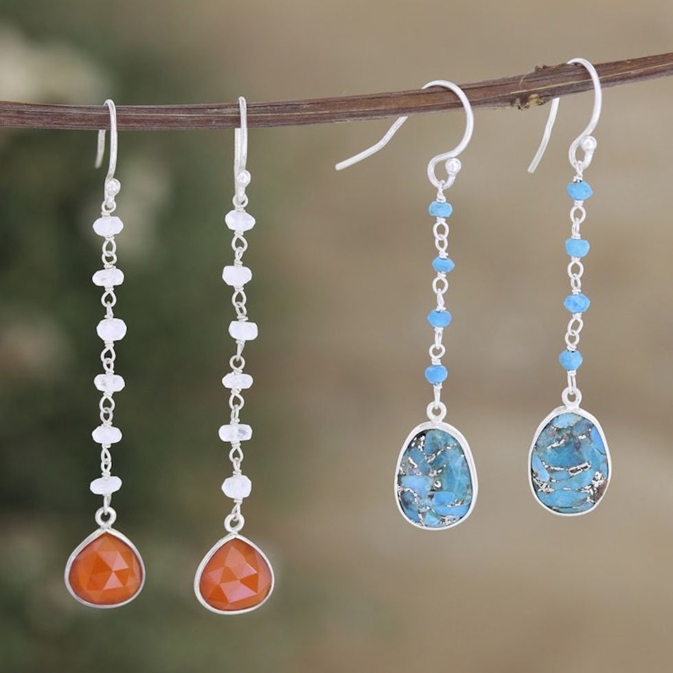 Sterling Silver Multi-Gemstone Dangle Earrings Set of 2 'Paradise of Luxury' Item ID: 2671787053