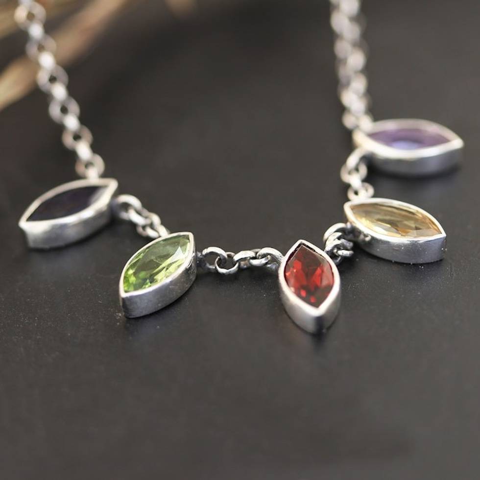Sterling Silver Multi-Gemstone Link Necklace Made in India 'Color and Glam' Item ID: 2671786756
