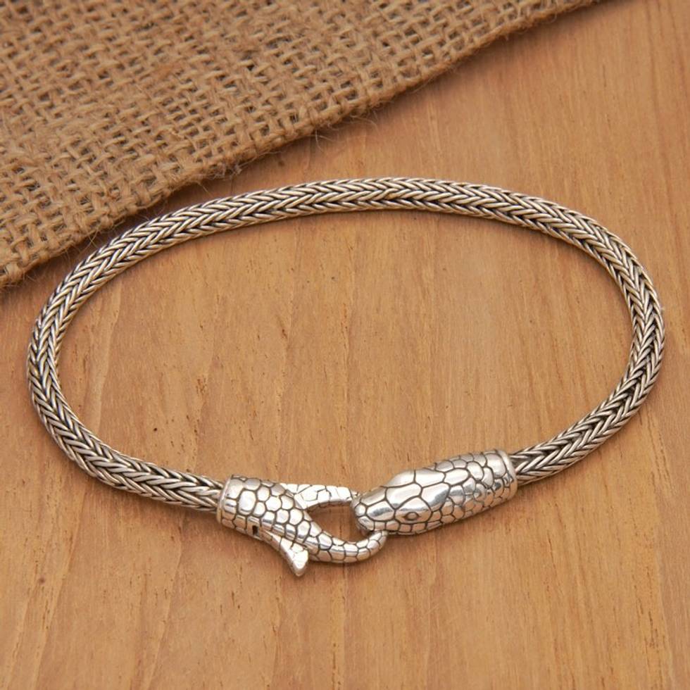 Sterling Silver Naga Chain Bracelet with Snake Pendant 'Serpent Allure' Item ID: 2671821648