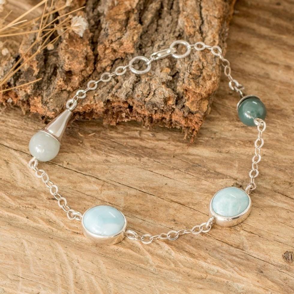Sterling Silver Natural Jade and Larimar Link Bracelet 'Healing Union' Item ID: 2671769248