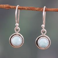 Sterling Silver Natural Larimar Cabochon Dangle Earrings 'Sky Love' Item ID: 2671625509