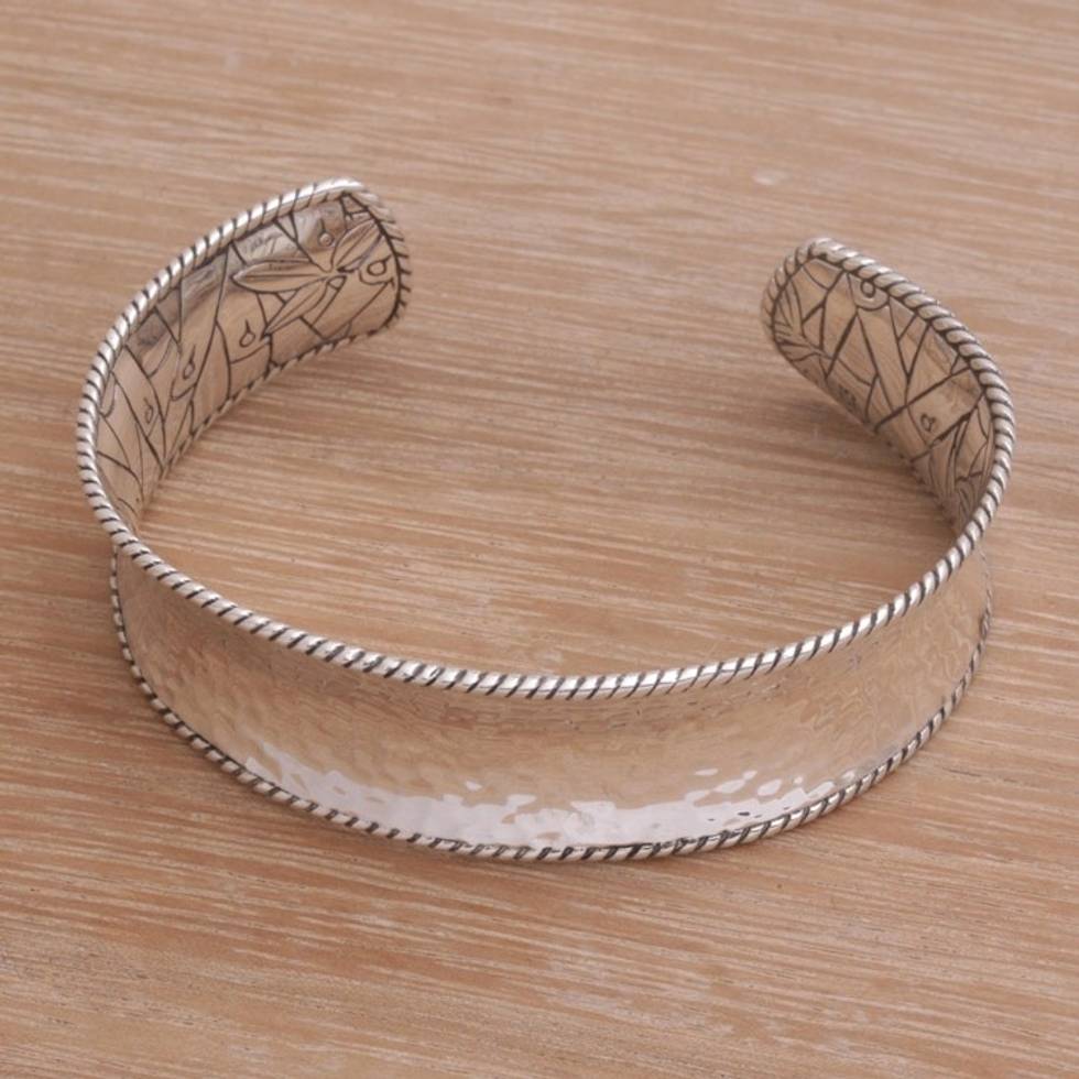 Sterling Silver Nature Themed Cuff Bracelet from Bali 'Reforestation' Item ID: 2671733984