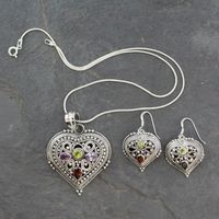 Sterling Silver Necklace and Earrings Jewelry Set 'Joyful Heart' Item ID: 2671794763