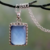 Sterling Silver Necklace from India with Blue Chalcedony Gem 'Good Will Spirit' Item ID: 2671793696