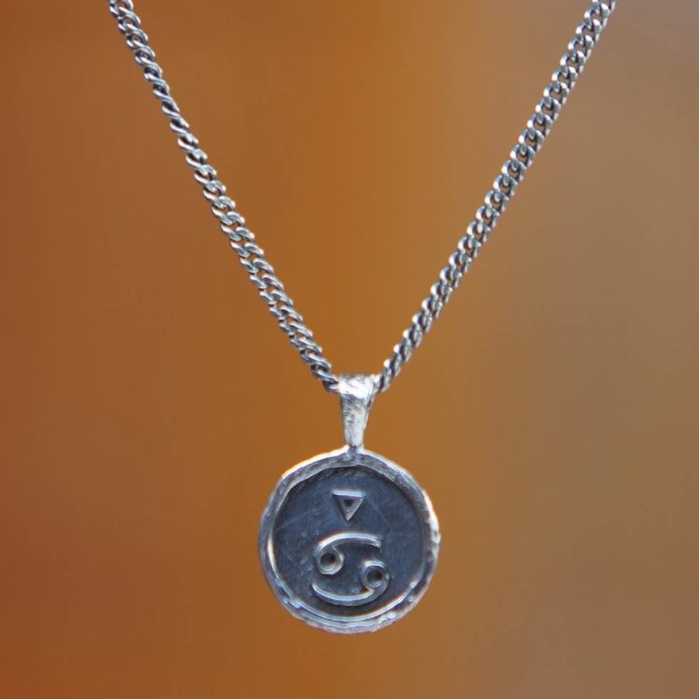 Sterling Silver Necklace with Cancer Zodiac Sign Pendant 'Cancer Charm' Item ID: 2671764556