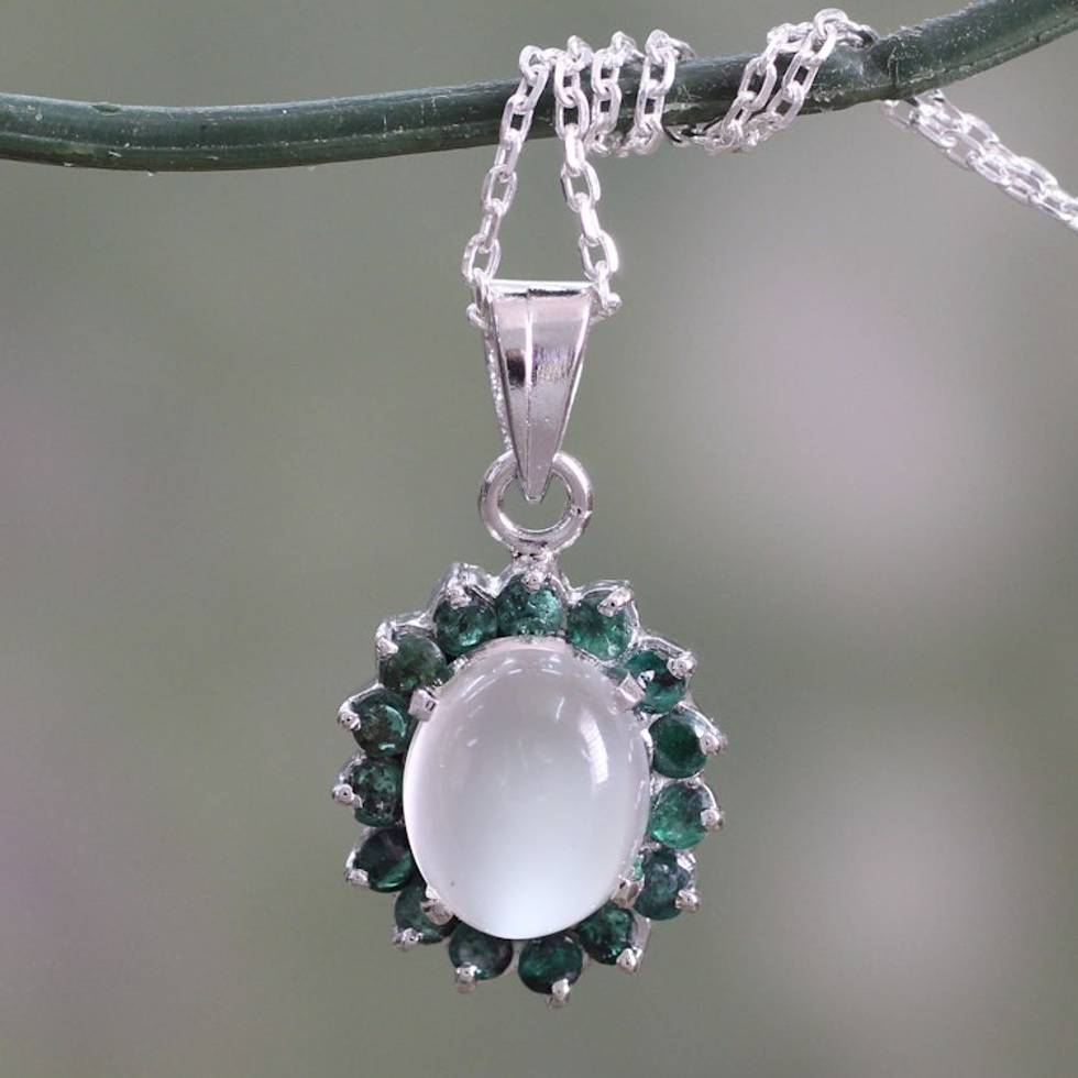 Sterling Silver Necklace with Emerald and Moonstone 'Love and Devotion' Item ID: 2669943927