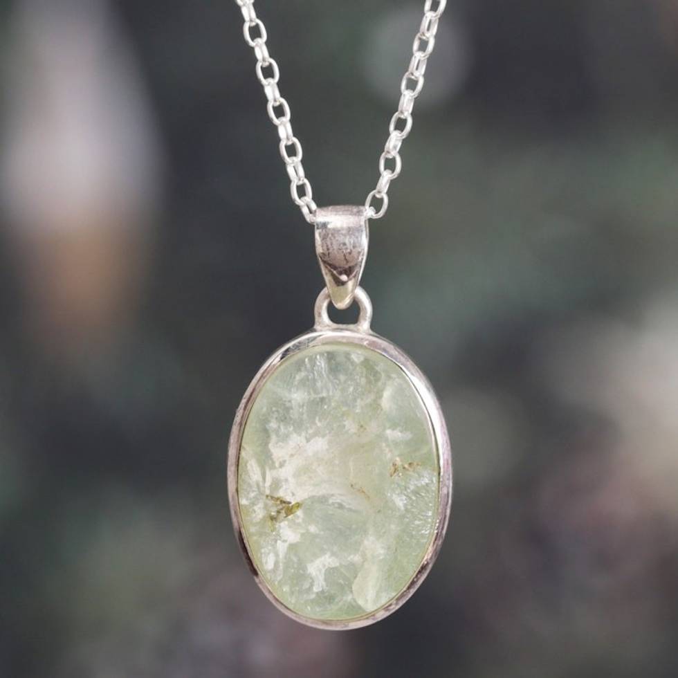 Sterling Silver Necklace with Freeform Apatite Pendant 'Learning Spirit' Item ID: 2671782305