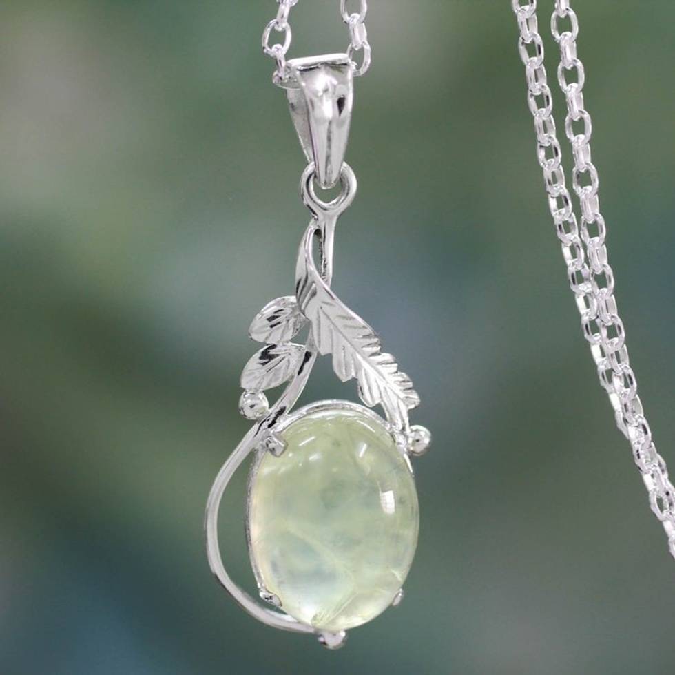 Sterling Silver Necklace with Prehnite Leafy Pendant 'Mystic Treasure' Item ID: 2671793417