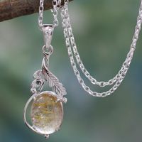 Sterling Silver Necklace with Rutilated Quartz Leafy Pendant 'Mystic Treasure' Item ID: 2669925442