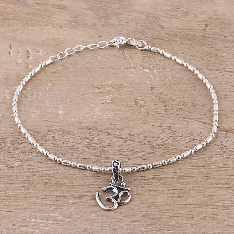 Sterling Silver Om Charm Bracelet from India 'Om Peace' Item ID: 2671792487