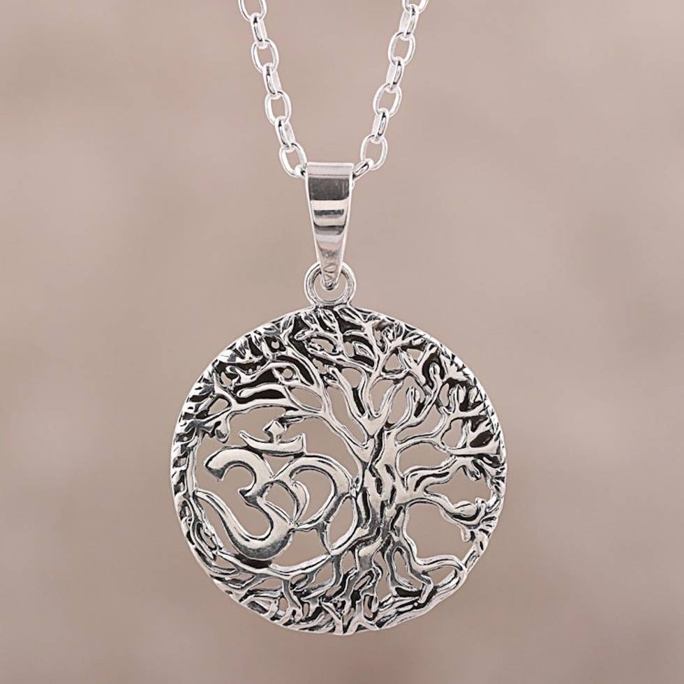 Sterling Silver Om Tree Pendant Necklace from India 'Pious Om' Item ID: 2669943944
