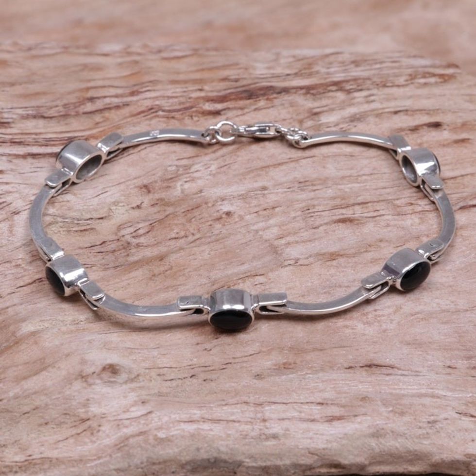 Sterling Silver Onyx Bracelet from Indonesia 'Black Rice Seeds' Item ID: 2671700260