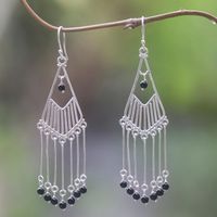 Sterling Silver Onyx Dangle Earrings Handmade in Indonesia 'Bali Raindrops' Item ID: 2671732450