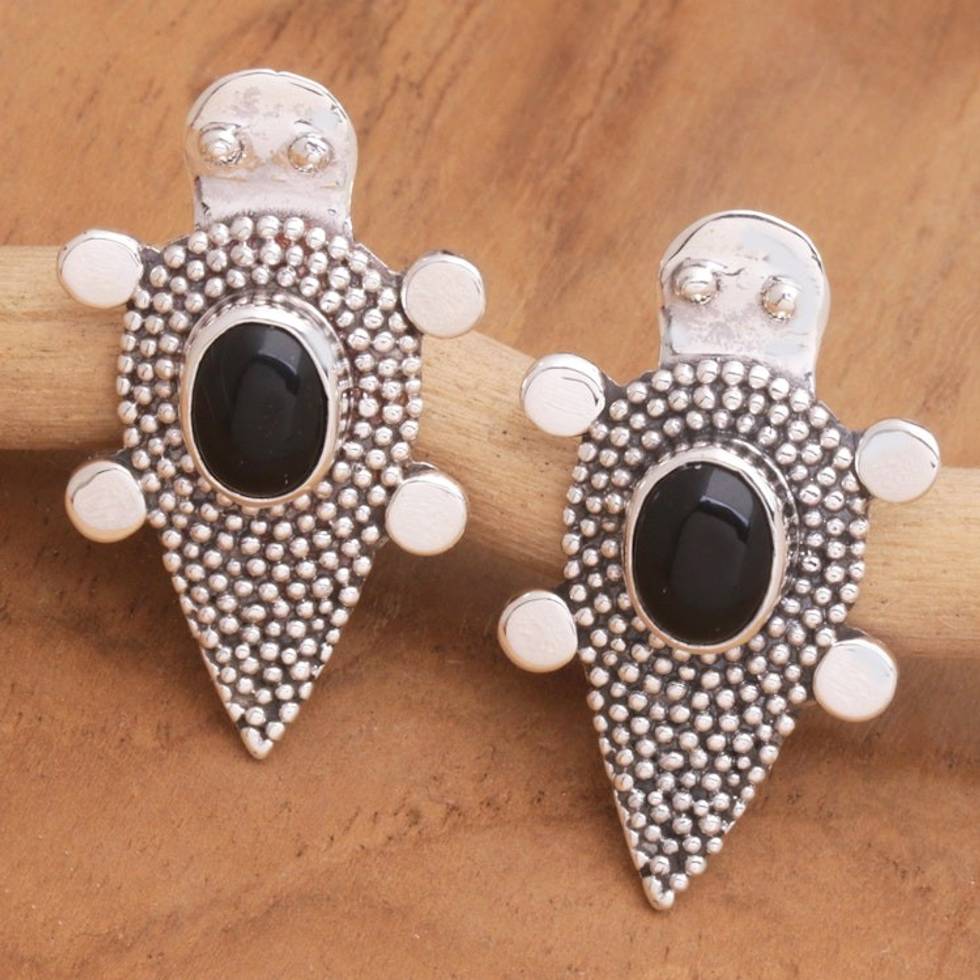 Sterling Silver Onyx Tortoise Button Earrings 'Heaven's Black Tortoise' Item ID: 2671748486
