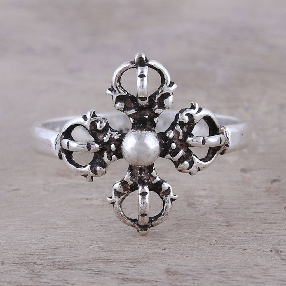 Sterling Silver Openwork and Dot Motif Flower Cocktail Ring 'Compass Rose' Item ID: 2671792263