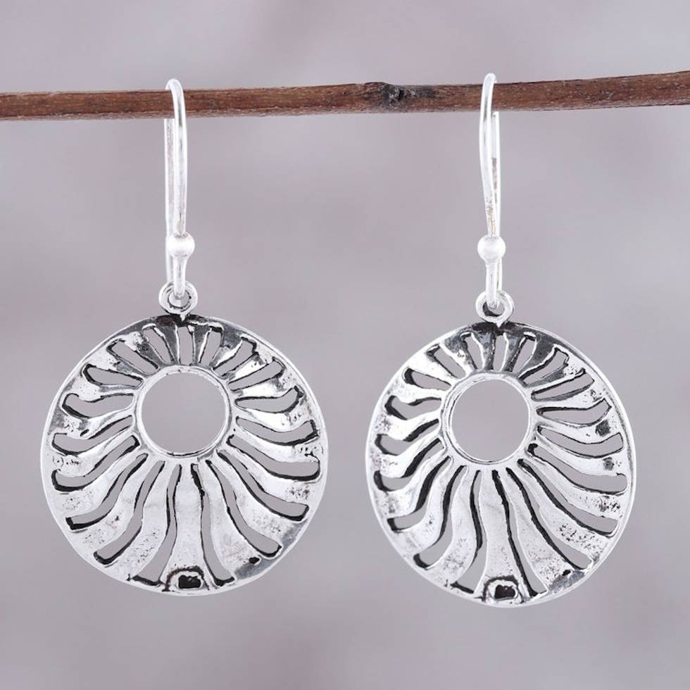 Sterling Silver Openwork Circle Dangle Earrings from India 'Abundant Rays' Item ID: 2671792585
