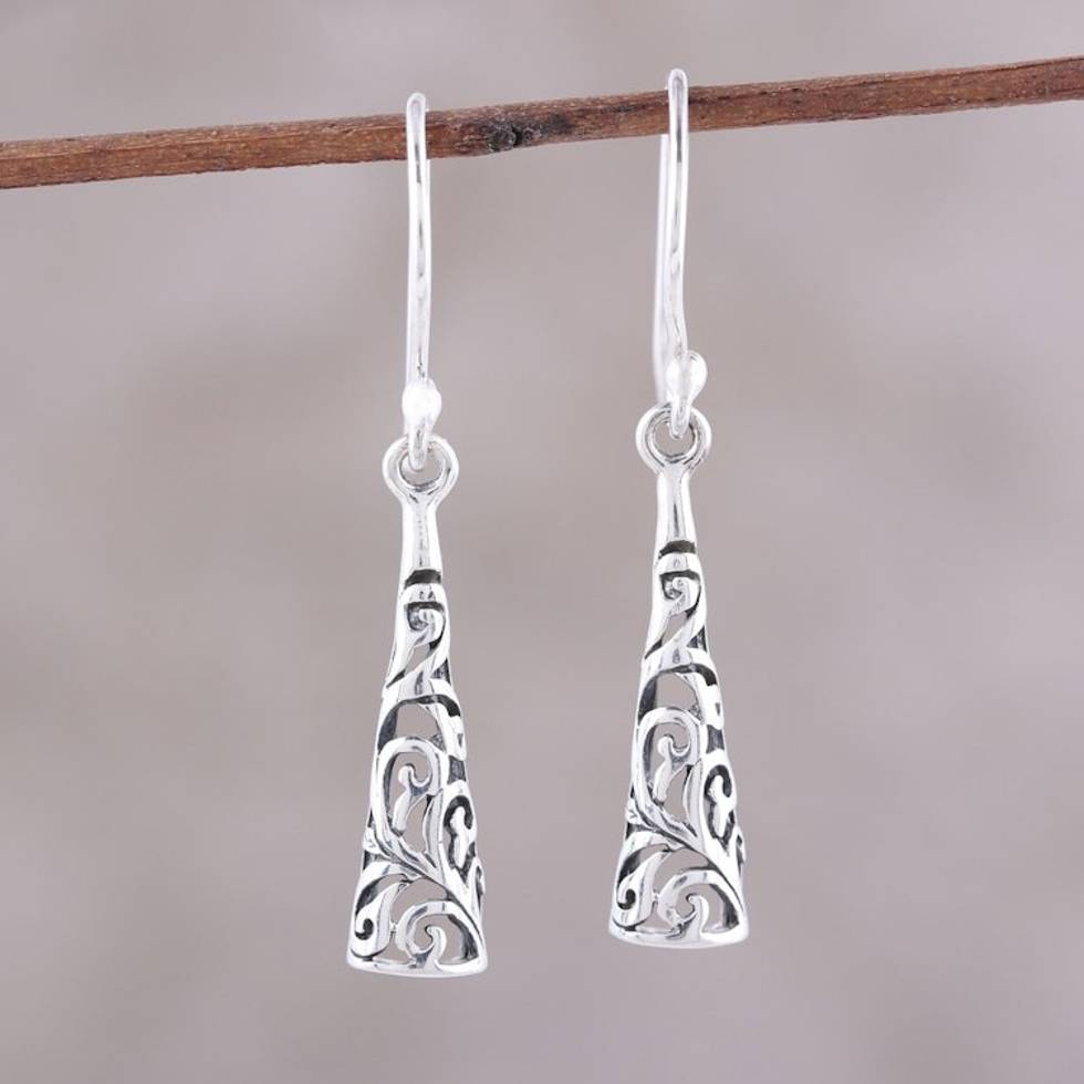 Sterling Silver Openwork Scrolls Dangle Earrings from India 'Ornate Curl' Item ID: 2671792216