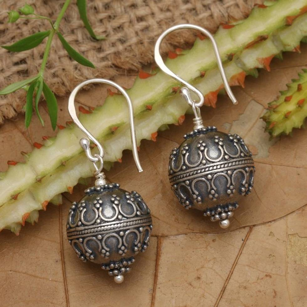 Sterling Silver Ornate Dangle Earrings from Indonesia 'Majestic Bali' Item ID: 2671733963