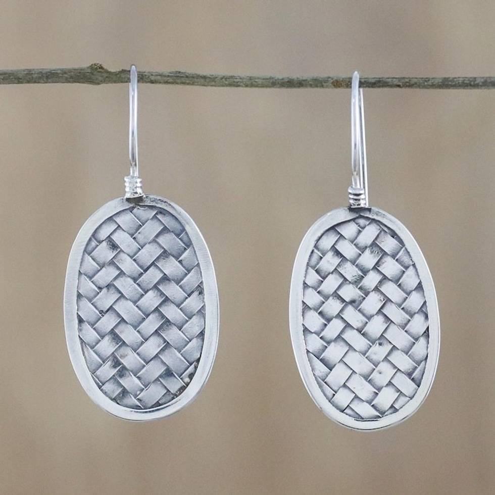 Sterling Silver Oval Weave Dangle Earrings from Thailand 'Woven Oval' Item ID: 2671800569
