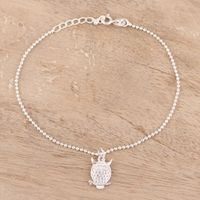 Sterling Silver Owl Charm Bracelet from India 'Hooting Owl' Item ID: 2671792132