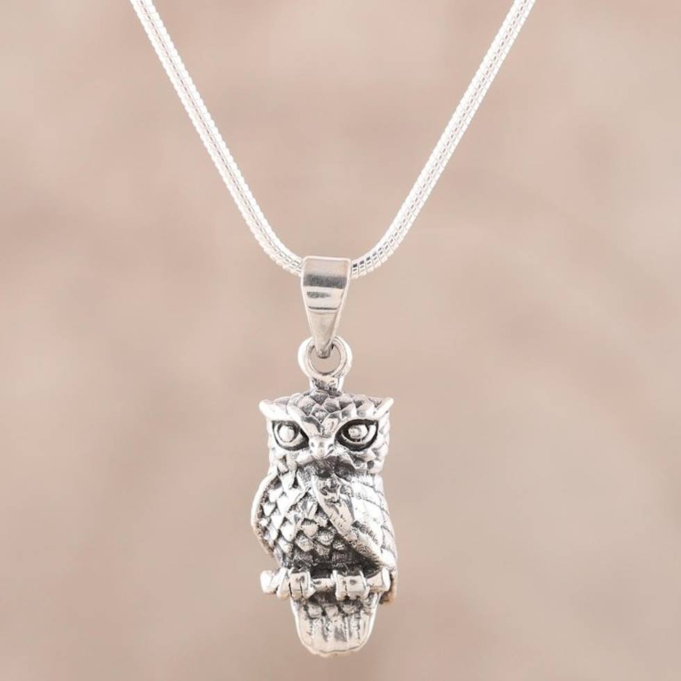 Sterling Silver Owl Pendant Necklace from India 'Magnificent Owl' Item ID: 2671792344