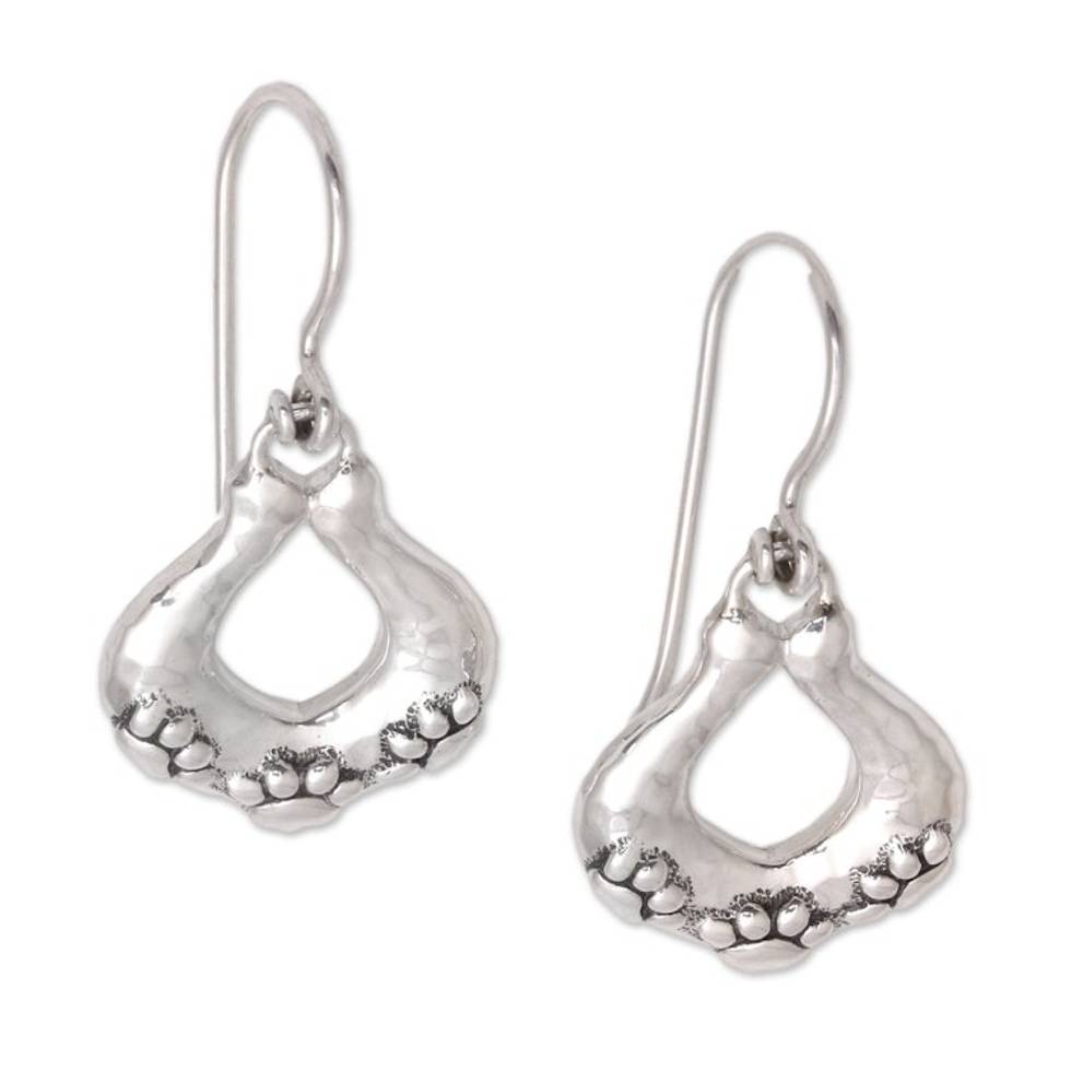 Sterling Silver Paw Motif Dangle Earrings from Bali 'Hopeful Paws' Item ID: 2671736547