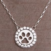 Sterling Silver Paw Print Pendant Necklace from Bali 'Dog Paw' Item ID: 2671608670