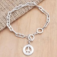 Sterling Silver Peace Sign Charm Bracelet 'Peace Everywhere' Item ID: 2671555515