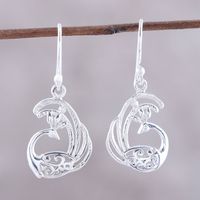 Sterling Silver Peacock Dangle Earrings from India 'Peacock Delight' Item ID: 2671792477