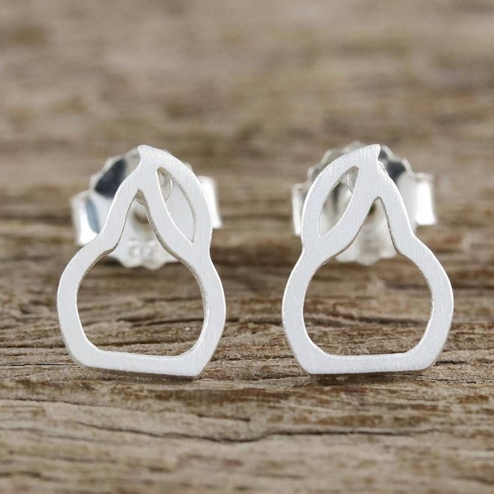 Sterling Silver Pear Stud Earrings from Thailand 'Pears' Item ID: 2671800990