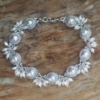 Sterling Silver Pearl Link Bracelet 'Moons and Shooting Stars' Item ID: 2671483870