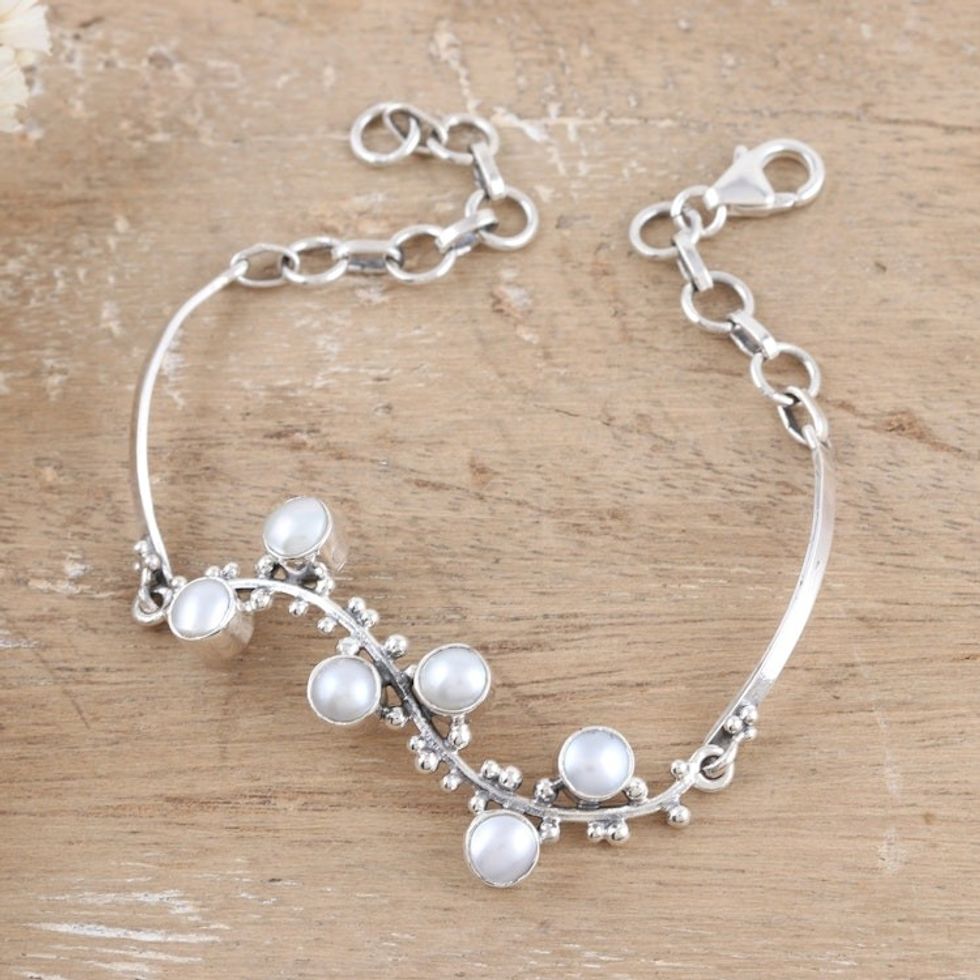 Sterling Silver Pendant Bracelet with Cultured Pearls 'Pearly Berries' Item ID: 2671786662