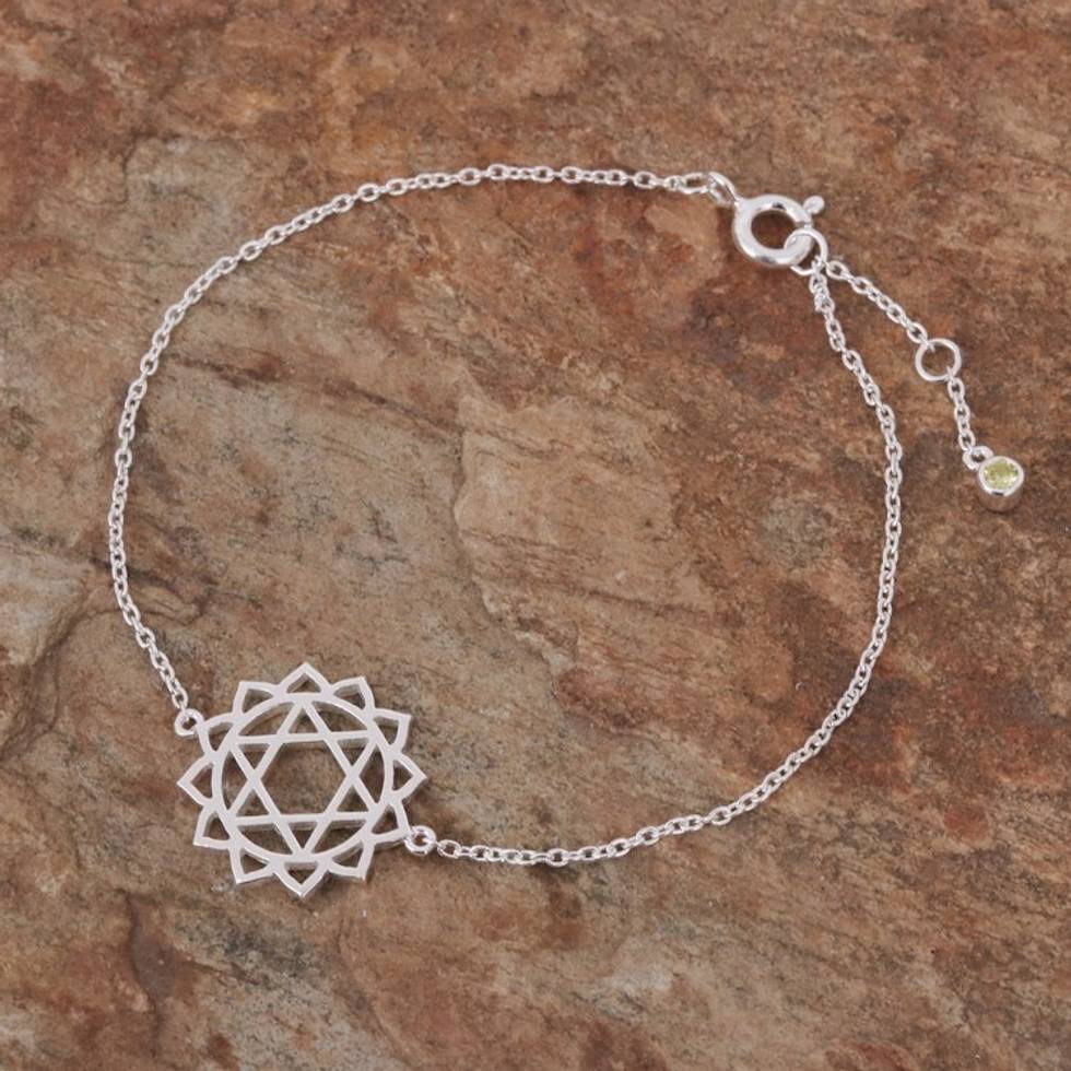 Sterling Silver Pendant Bracelet with Green Cubic Zirconia 'Green Heart Chakra' Item ID: 2671798144