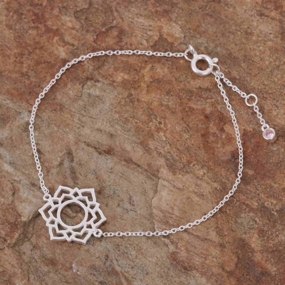 Sterling Silver Pendant Bracelet with Pink Cubic Zirconia 'Pink Chakra Crown' Item ID: 2669926075