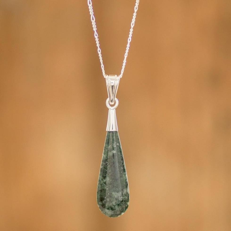 Sterling Silver Pendant Jade Necklace 'Jungle Dewdrop' Item ID: 2671779363