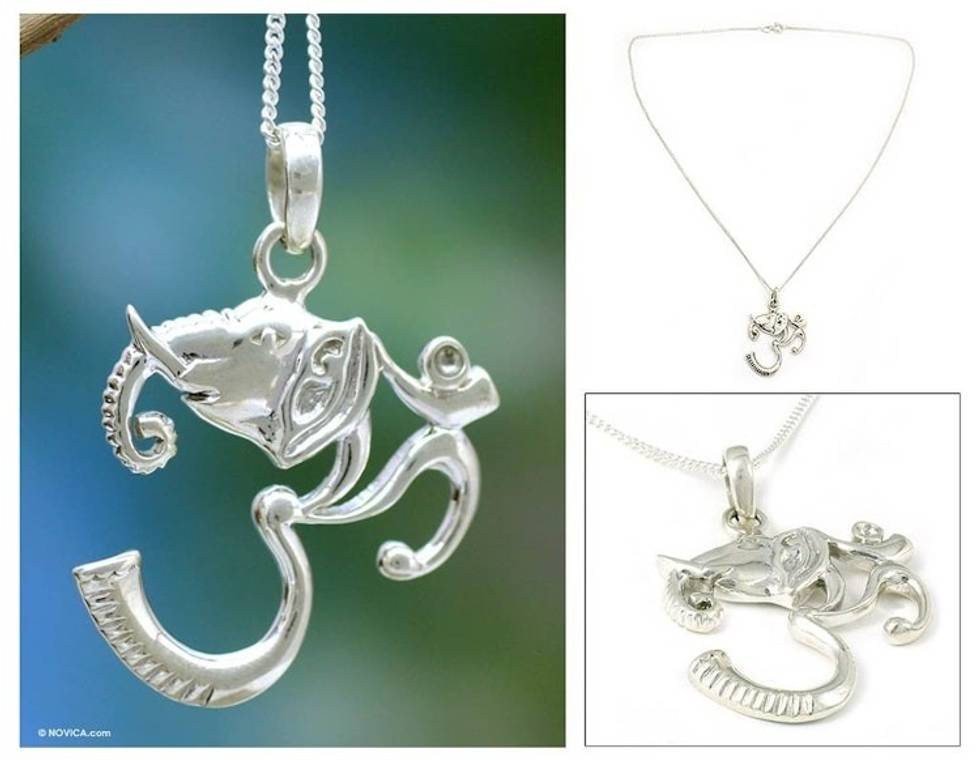 Sterling silver pendant necklace 'Ganesha Meditation' Item ID: 2671794775