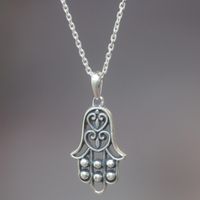 Sterling Silver Pendant Necklace Hamsa Symbol from Indonesia 'Silver Hamsa' Item ID: 2671821137