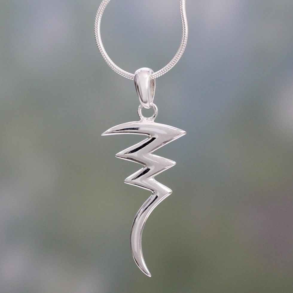 Sterling Silver Pendant Necklace Handmade Modern Jewelry 'Lightning' Item ID: 2669924341