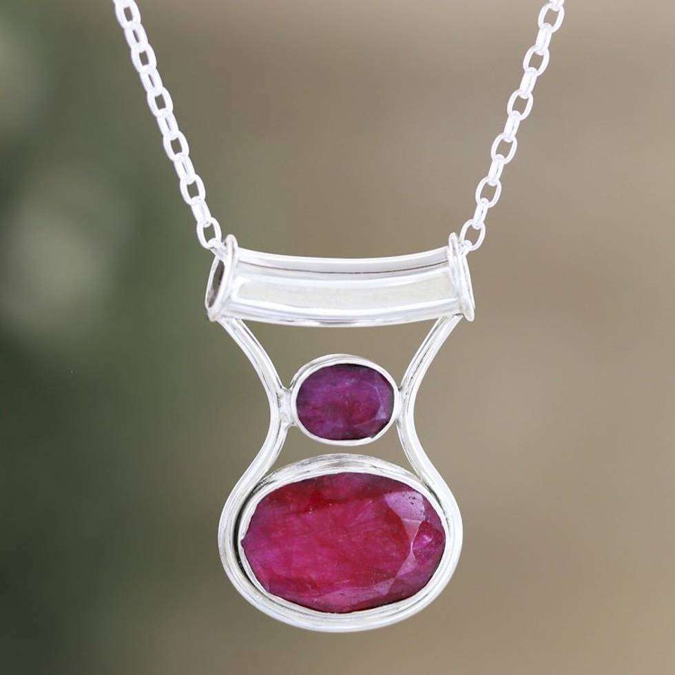 Sterling Silver Pendant Necklace with 13-Carat Ruby Gems 'Simply Passion' Item ID: 2669924885