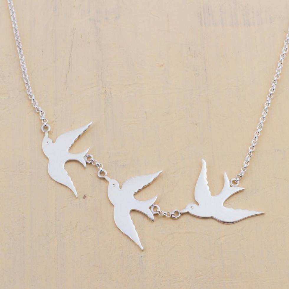 Sterling Silver Pendant Necklace with 3 Birds from Peru 'Three Doves' Item ID: 2671695602