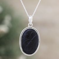 Sterling Silver Pendant Necklace with Black Onyx from India 'Leaf Rapture' Item ID: 2671787020