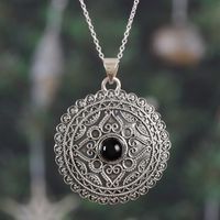 Sterling Silver Pendant Necklace with Black Onyx Stone 'Love in Shadows' Item ID: 2671786715