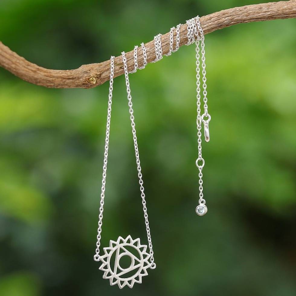 Sterling Silver Pendant Necklace with Blue Cubic Zirconia 'Blue Throat Chakra' Item ID: 2671797520