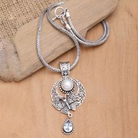 Sterling Silver Pendant Necklace with Blue Topaz and Pearl 'Blue Butterfly Teardrop' Item ID: 2671748570